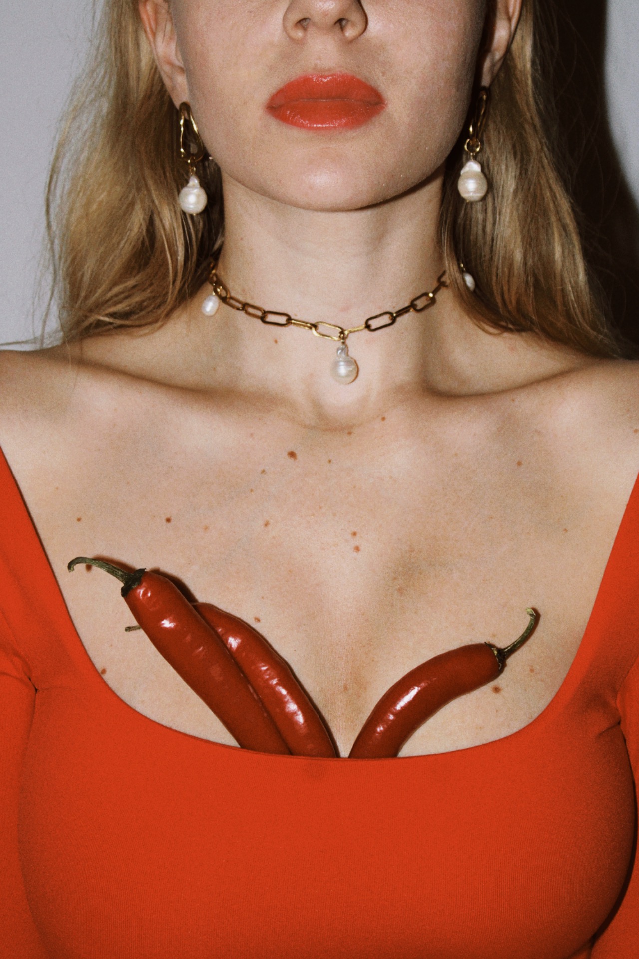 Design: Rytmicky vsazené perly na CHAIN řetízku tvoří originální a výjimečný choker.