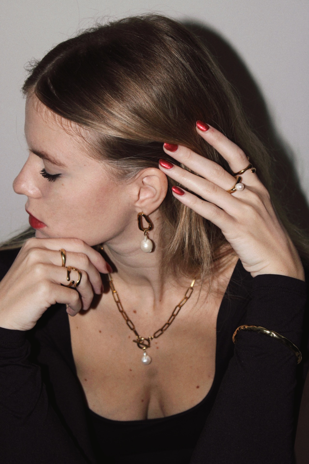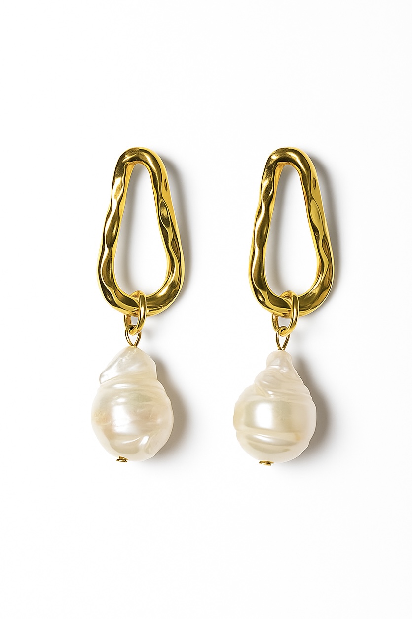 Tyto náušnice spojují moderní výraznost s přírodní elegancí barokní perly. Perla je zavěšena na asymetrickém oválném kroužku s jemným reliéfem, který dodává šperku strukturu a neokoukatelný charakter. Díky větší, výraznější velikosti jsou dokonale trendy a působí jako skutečný statement kousek. Stačí si je nasadit – a žádný další šperk už není potřeba.