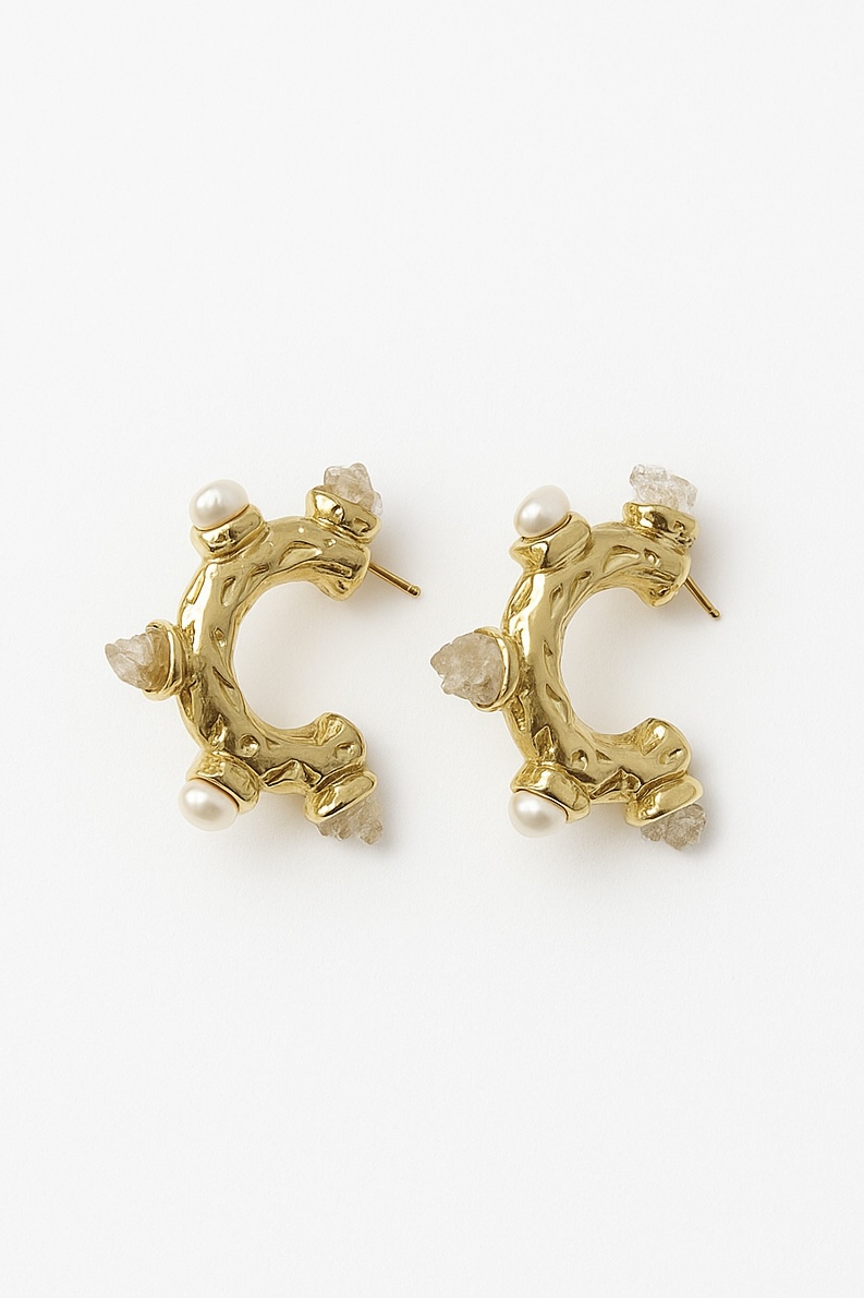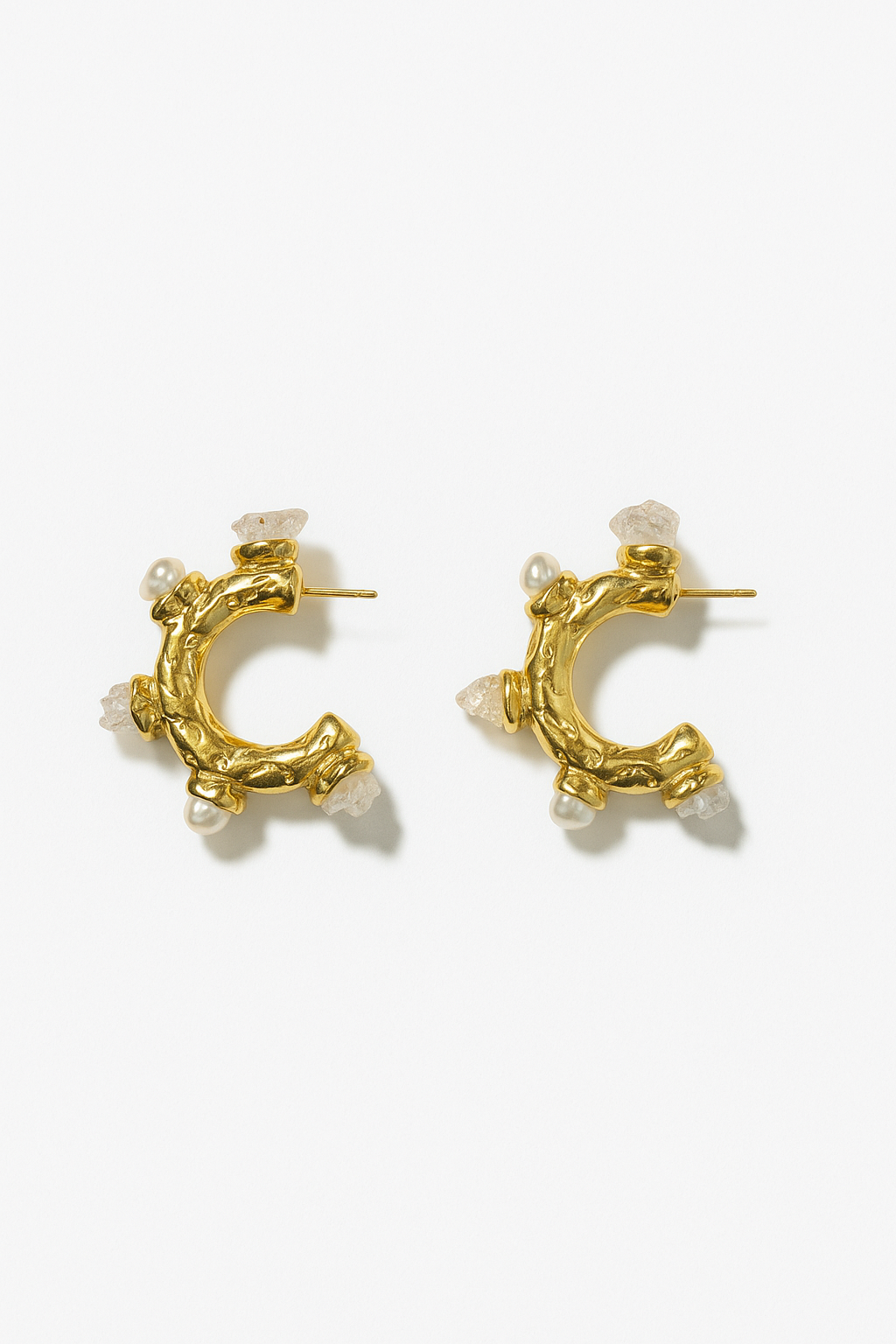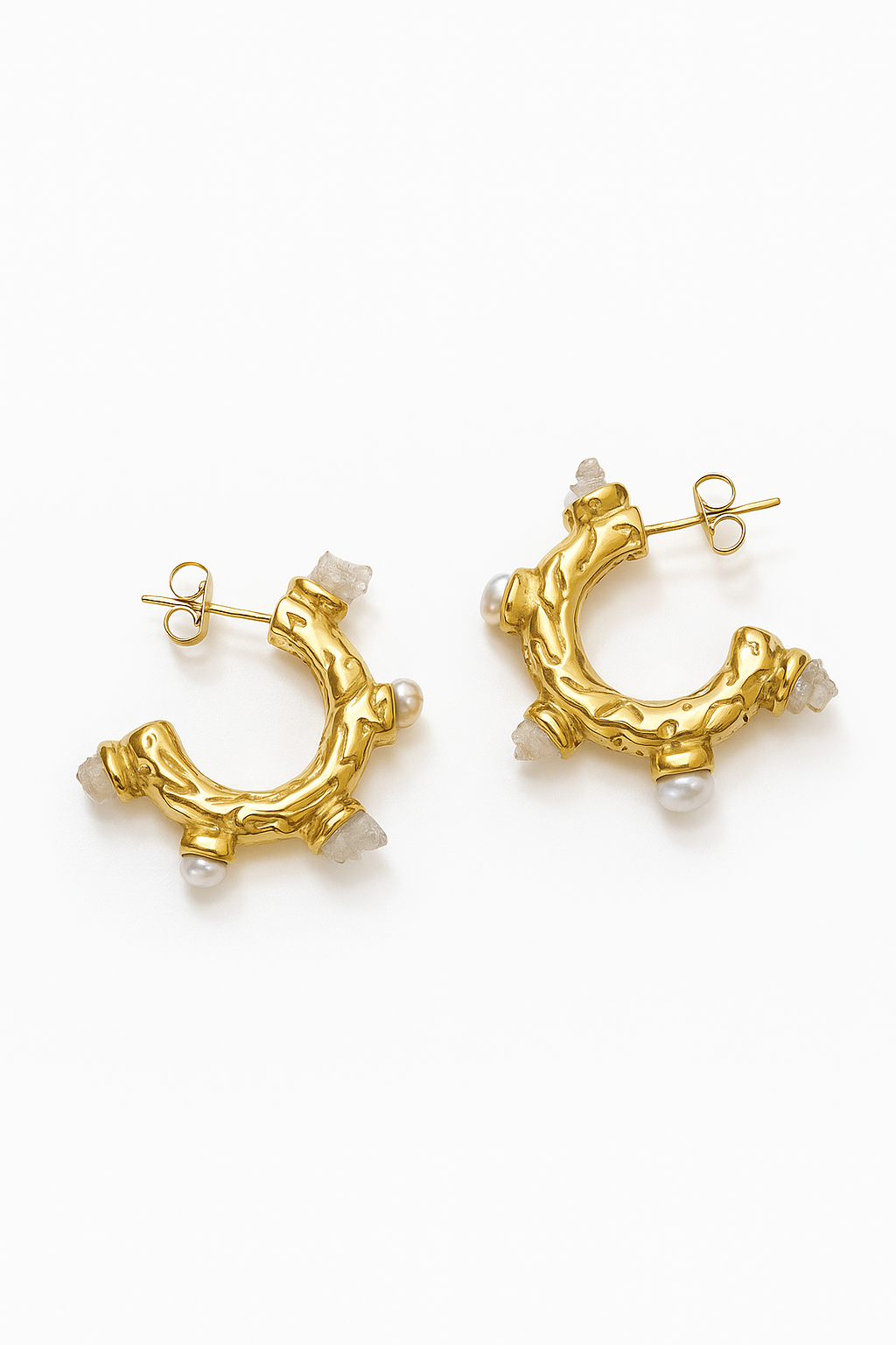 Tyto výrazné kruhové náušnice jsou nepřehlédnutelným, ikonickým kouskem, který okamžitě přitáhne pozornost. Masivnější kruhy mají výraznou strukturu připomínající chapadla chobotnice – právě proto nesou název Octopus. Z jejich reliéfu jakoby "vyrůstají" drobné perličky a křišťálová drůza, což vytváří jedinečný efekt plný hloubky, textury a originality.