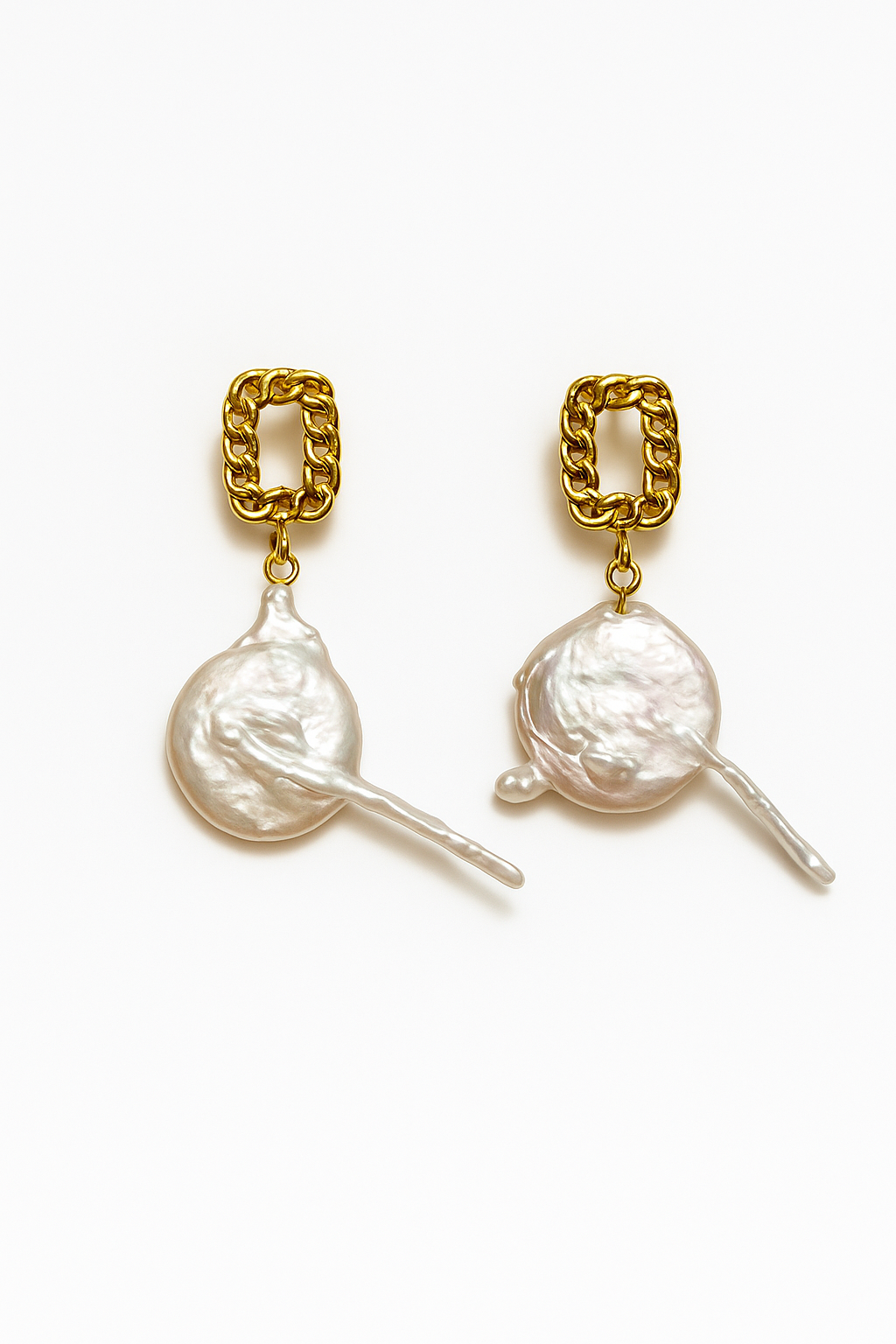 Pro ženy, které milují ikonické a výraznější šperky. Tyto náušnice s velkou placatou barokní perlou jsou nepřehlédnutelné – elegantní, originální a plné charakteru. Každá perla má svůj vlastní tvar, díky čemuž je každý pár jedinečný.