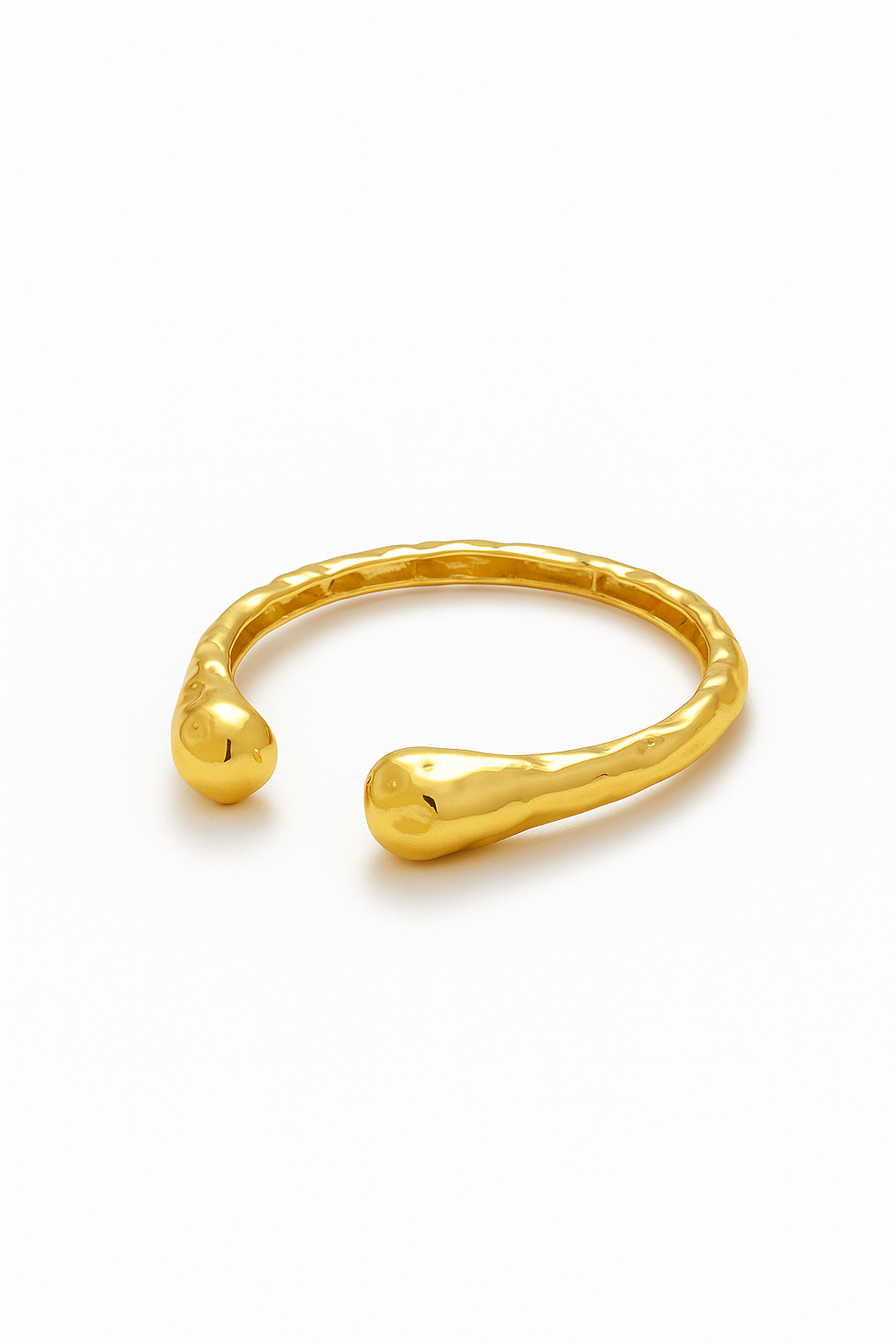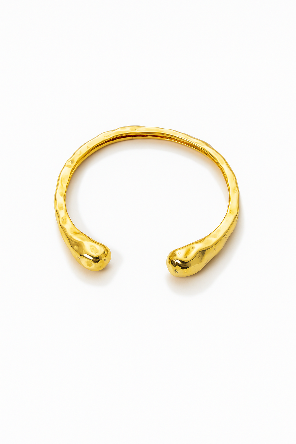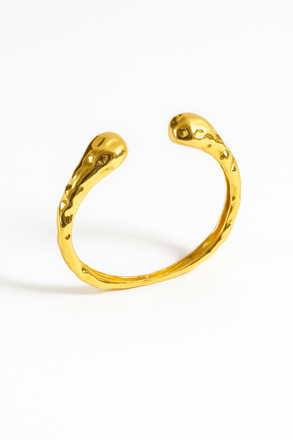 Tento tepaný náramek je moderní, výrazný a extrémně trendy. Jeho nepravidelně strukturovaný povrch jako ručně tvarovaný kov – každý detail má svůj vlastní charakter. Minimalistický, ale zároveň dost zajímavý na to, aby zaujal už na první pohled.